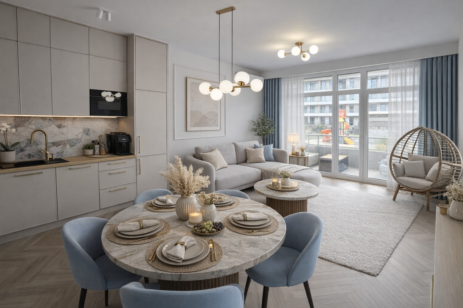 Na terenie Osiedla 5 Mórz gdzie znajduje się nasz apartament nad morzem Sianożęty Glamour w Sianożętach każdy znajdzie coś dla siebie. Dla miłośników relaksu przygotowaliśmy komfortowe miejsca do siedzenia w otoczeniu zieleni, idealne do czytania książki czy spędzania czasu z bliskimi. Apartament nad morzem Sianożęty jest także świetnym miejscem na rodzinny wypoczynek. Najmłodsi mogą cieszyć się nowoczesnym i bezpiecznym placem zabaw, który dostarcza mnóstwo radości. Aktywnym gościom polecamy siłownię na świeżym powietrzu, a także spacery wzdłuż plaży. To idealne miejsce na odpoczynek i regenerację!